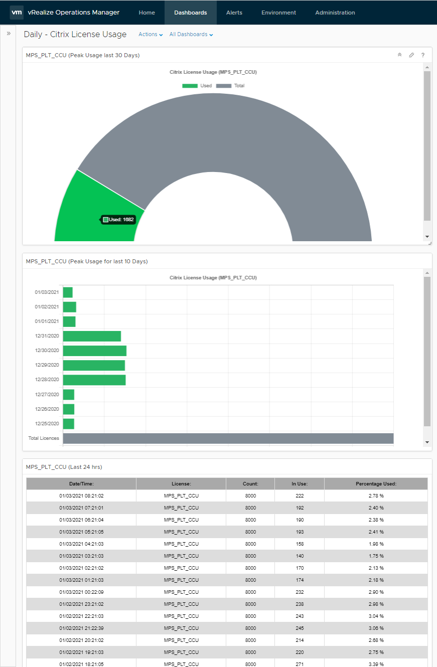 I like the idea of using VMware vRealize Operations as the “Single Pane of Glass” for all monitoring. The Citrix Team recently asked me if I could show license usage within vRealize Operations. They wanted to see the highest usage in the last 30 days, 10 days and 24 hours. Citrix license usage is not built into vROPS but I have used the “Text Display Widget” to show other information within vROPS.