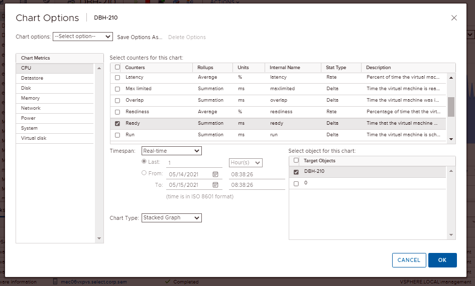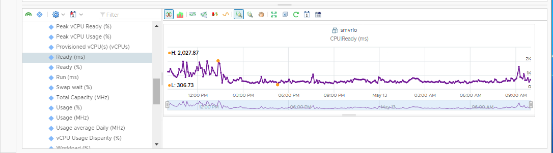 - CPU|Ready (ms) should be 1000 or less for best performance