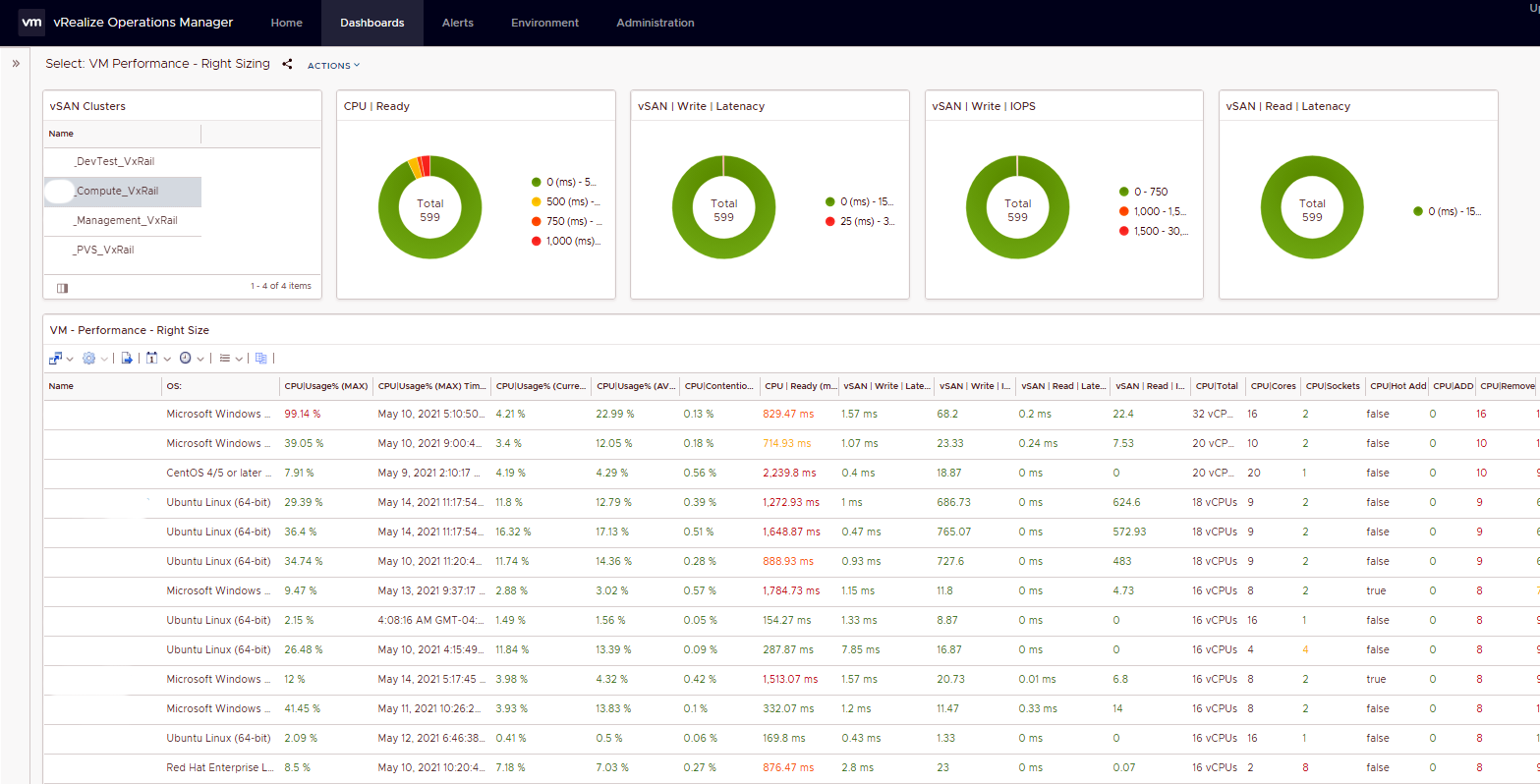 Using vROPS Data to help show APP Owners Proper VM Sizing: