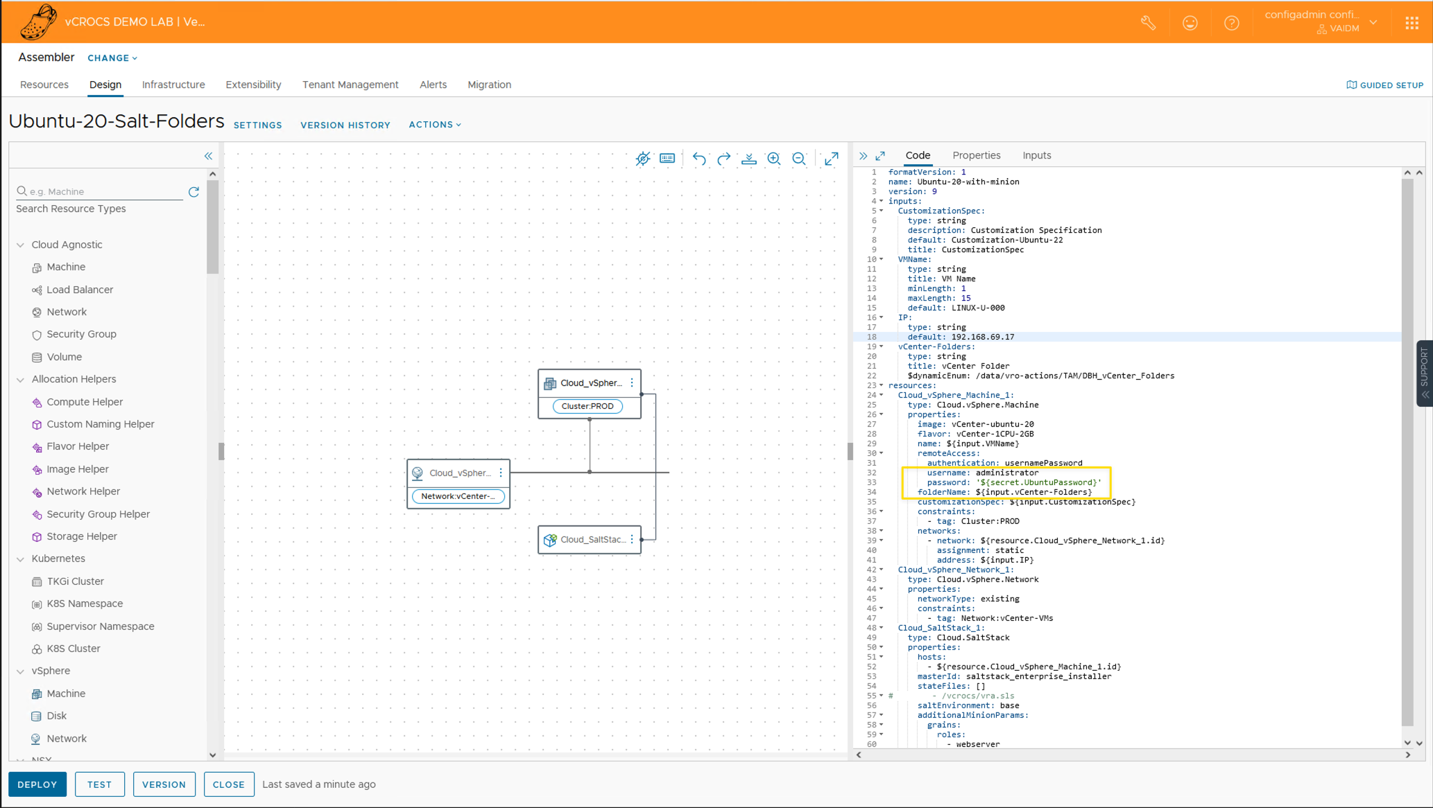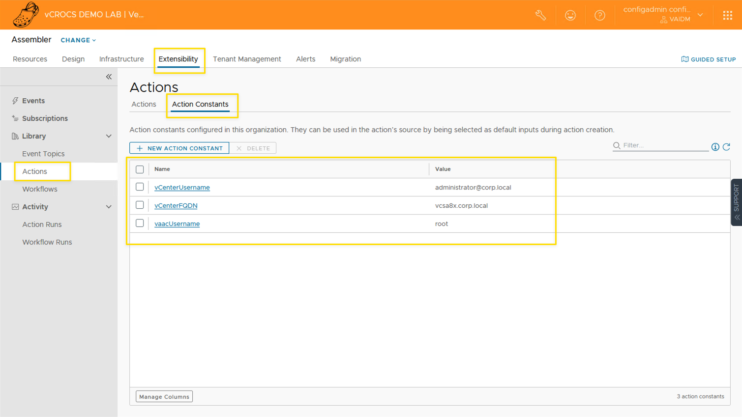 I wanted to share how I use Action Constants and Secrets within VMware Aria Automation. Action Constants are a great to have a variable that can be used with many Actions where the value may change. Instead of having to edit 10s or 100s of Actions, you change One Action Constant and all the Actions are updated instantly. Main reason to use Secrets is to keep the values of Passwords out of the code! Plus, like Action Constants, if a Password would change, all you need to do is change one Secret and all your Actions and Templates are automatically Updated. Secrets can also be used in the yaml code of Templates.
