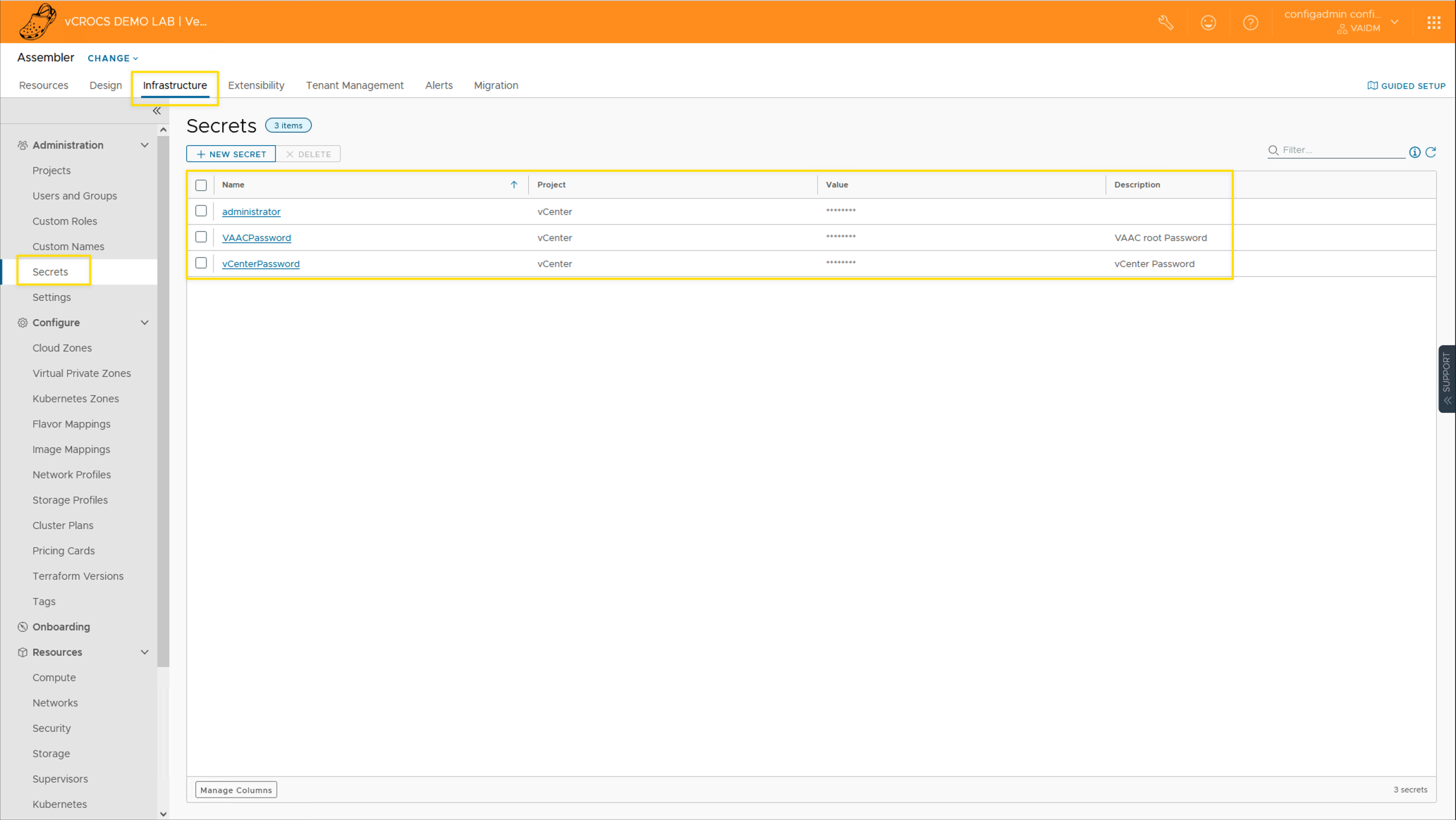 To access Secrets: Assembler/Infrastructure/Secrets/Secrets