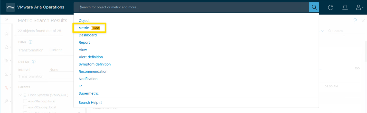 With the release of VMware Aria Operations 8.12, Metric Searches was added to the product.