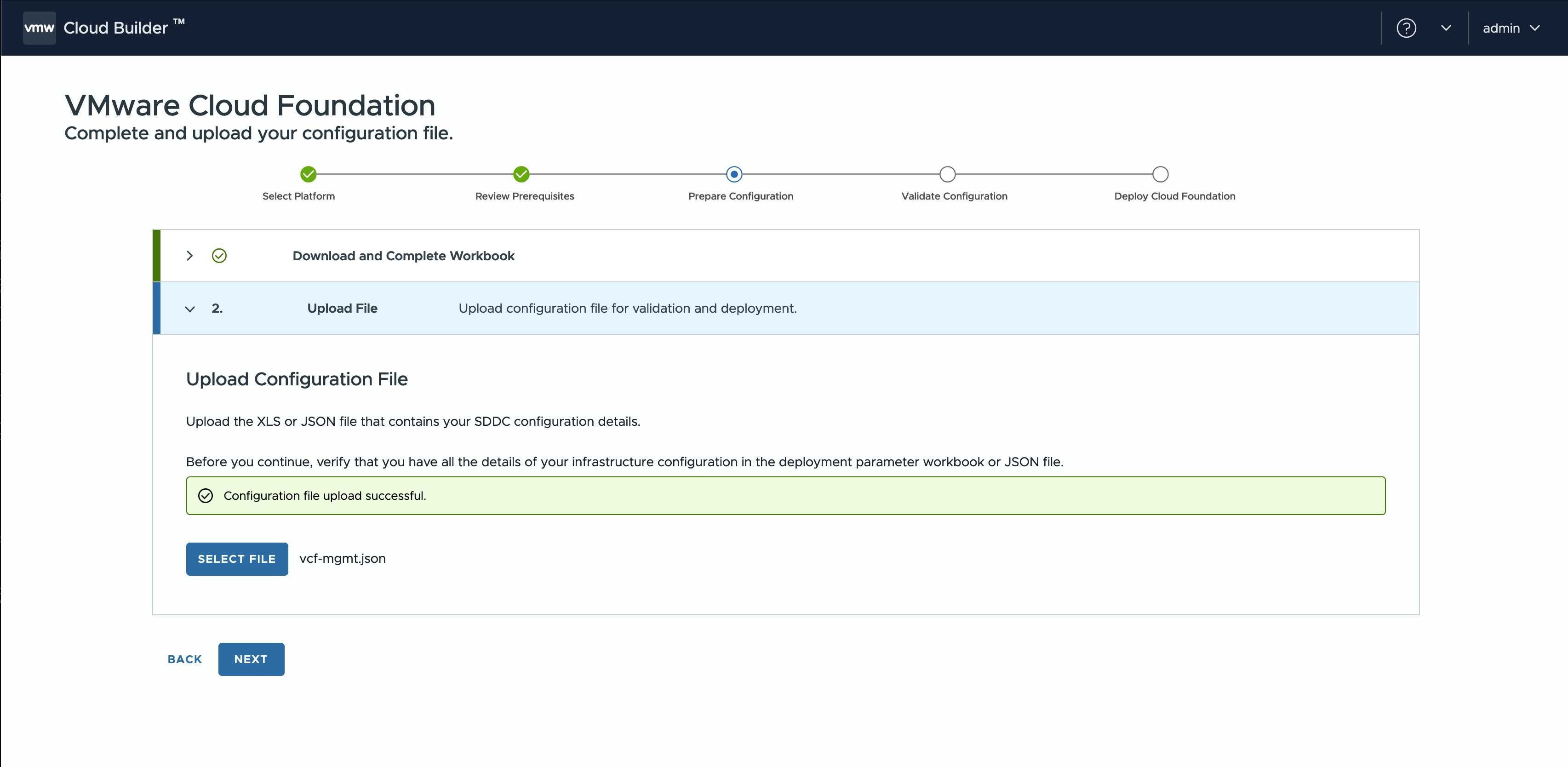 Screen Shot of VCF Cloud Builder Deploy wizard, step 2: