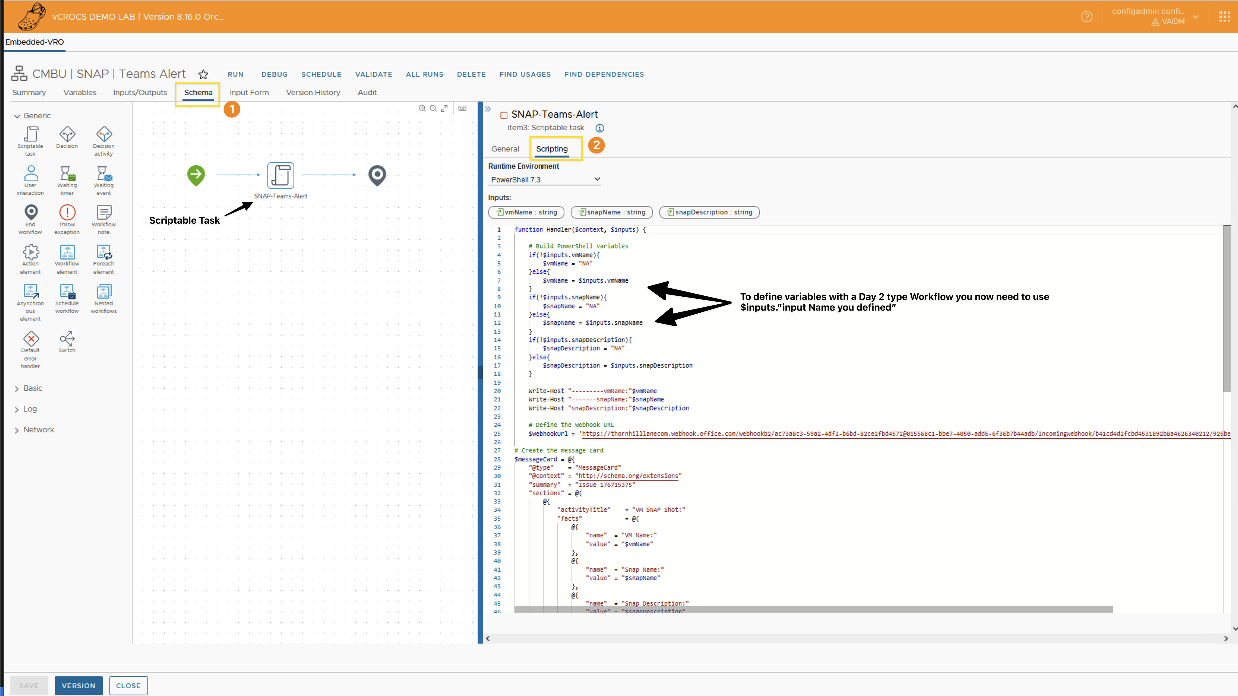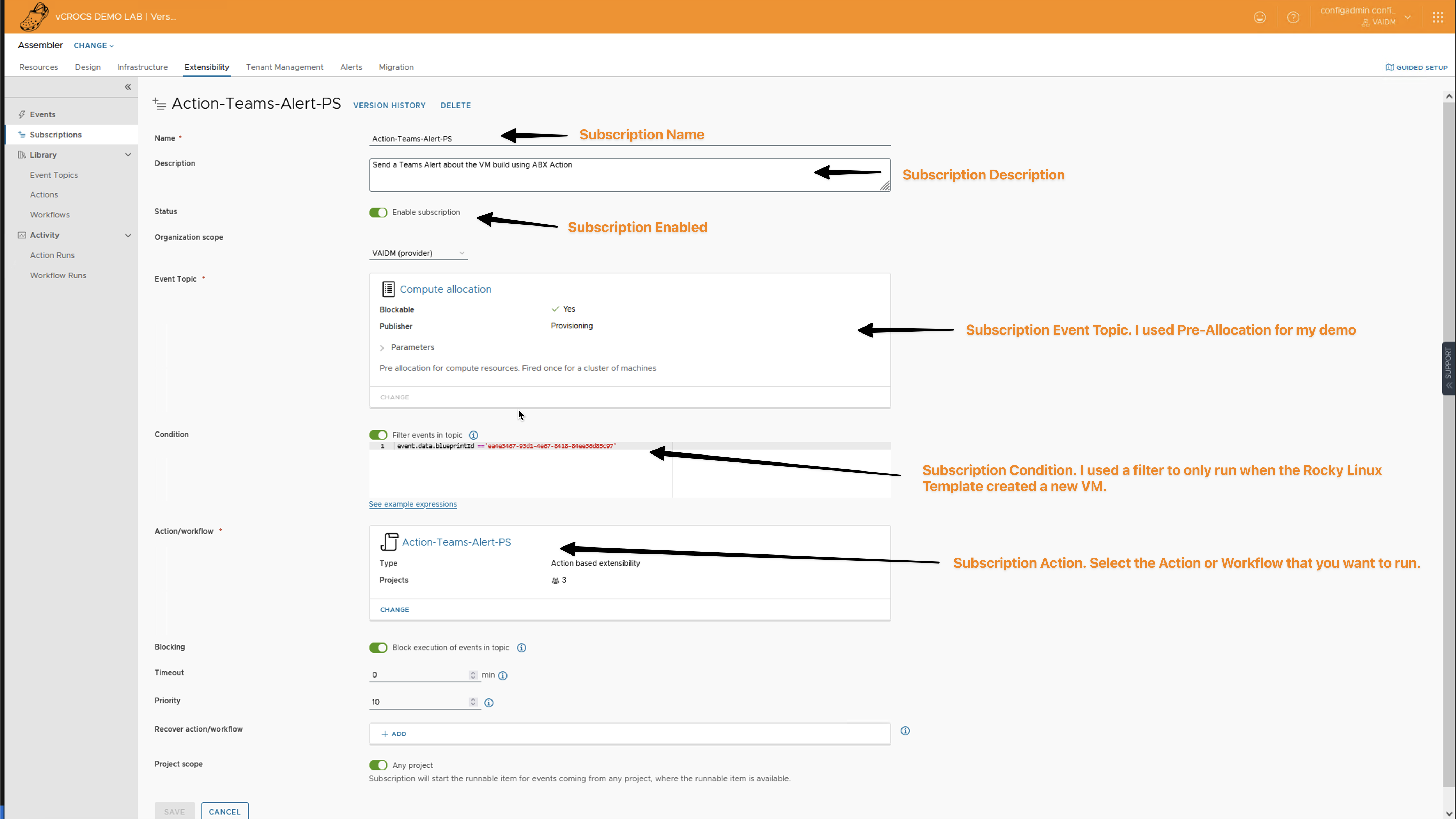 Besides notifying your team when a new VM is created, I’ll demonstrate how to dispatch a message through an Orchestrator Workflow for a Day 2 Automation process.