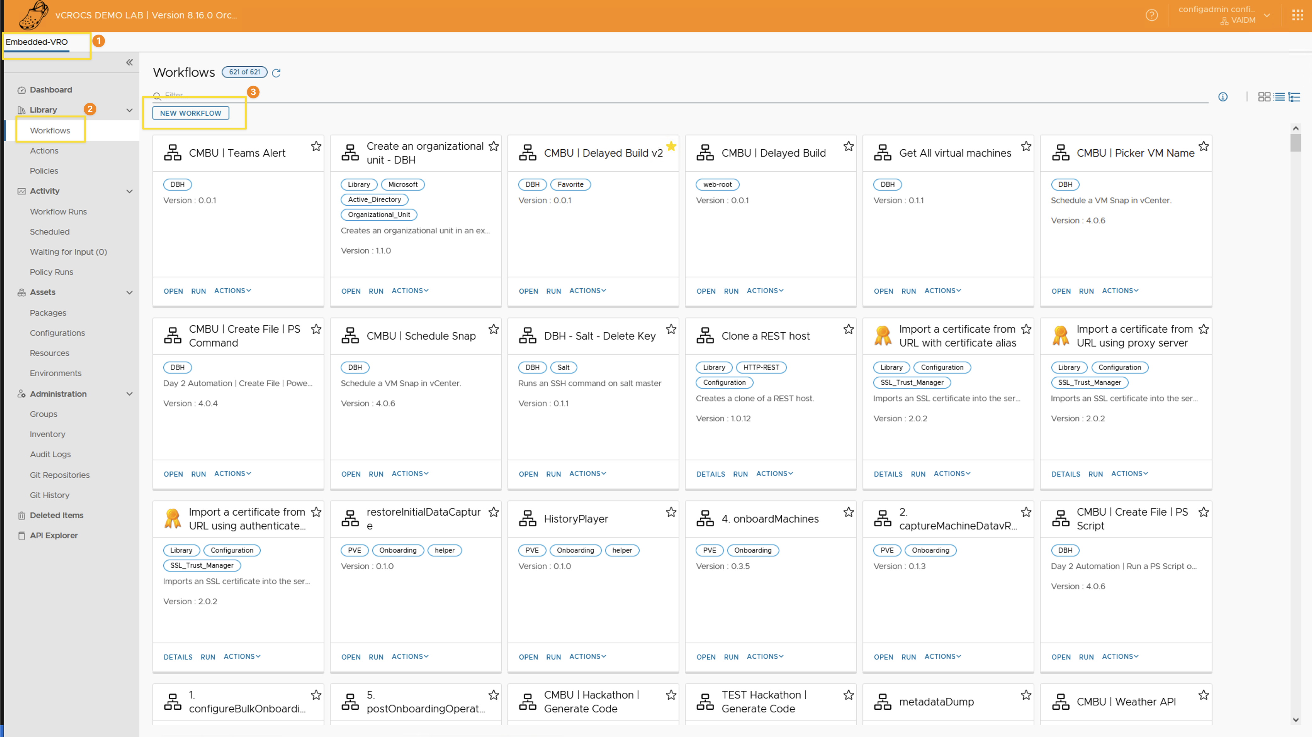 - Initiate the creation of an Orchestrator Workflow. Creating a new Workflow is the same for Day 2 Automation Processes as when a Workflow was created for building a New VM. | Refer to Screen Shot 7.