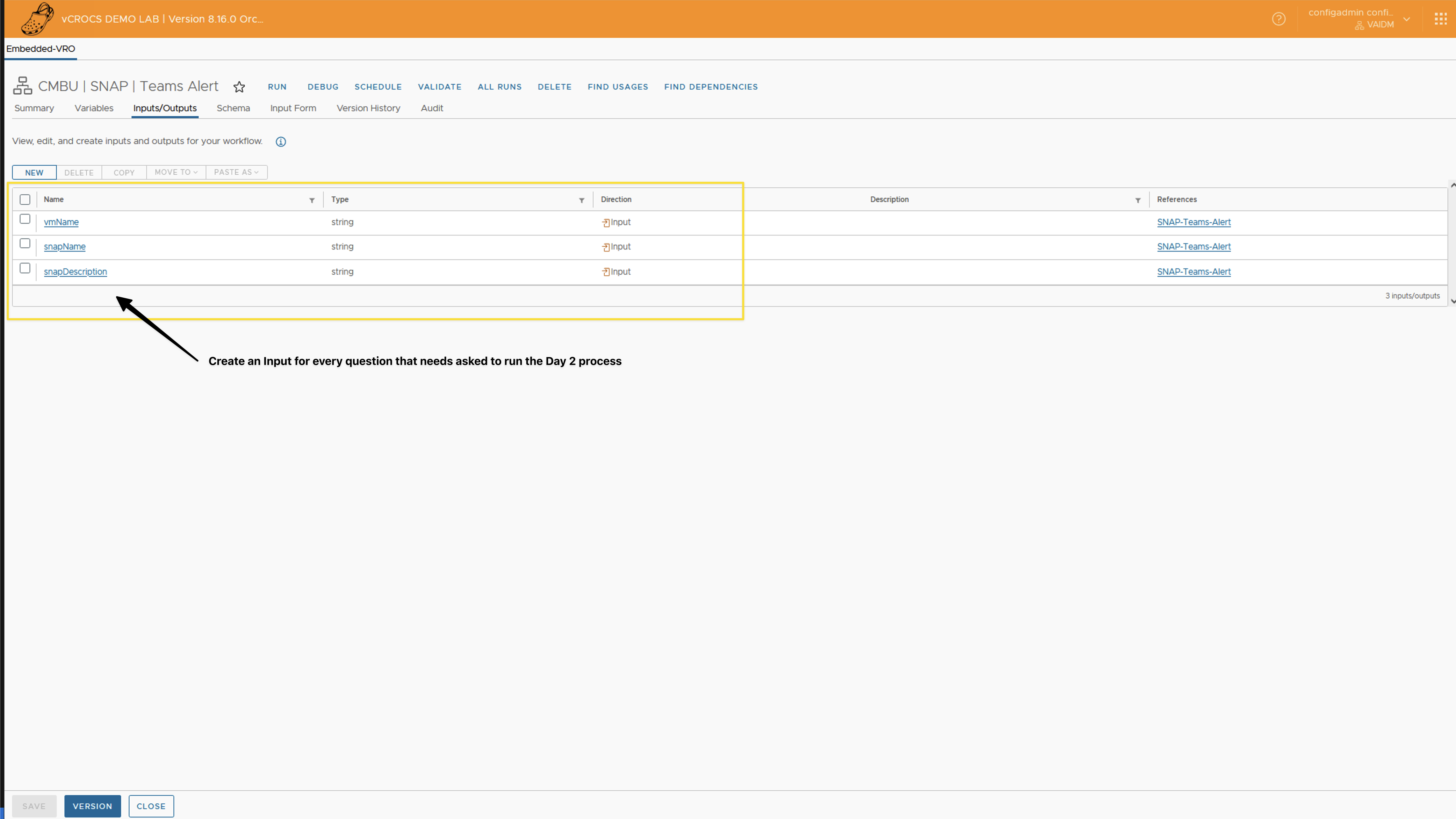 Add all the required inputs to the Workflow for the Day 2 Automation process.