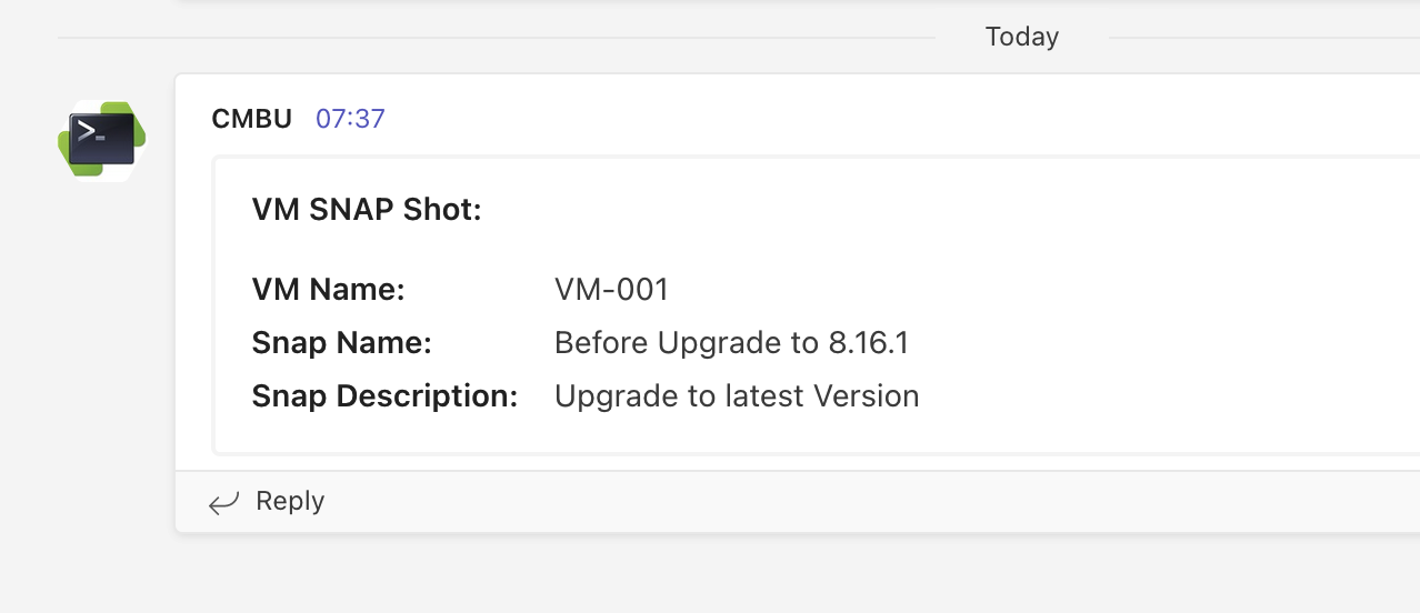 Microsoft Teams Message with Day 2 Automation Details. Awesome!