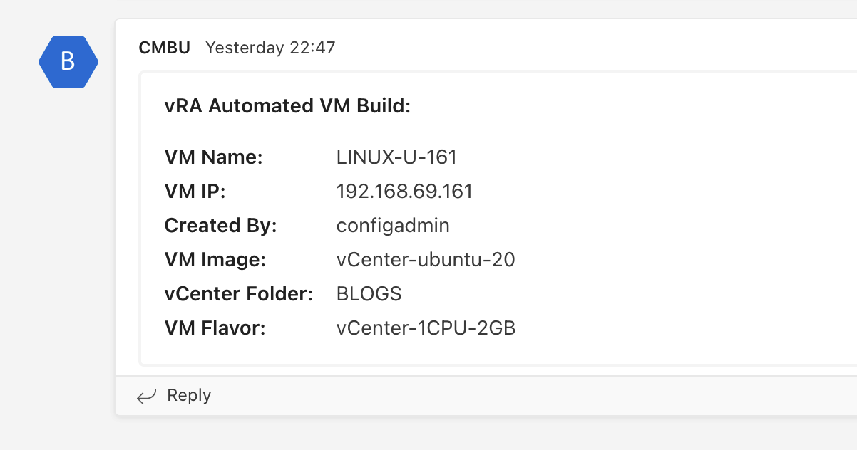 - Check your preferred messaging system to ensure the notification was received. The Messages with look the same as when you created a New VM. YOU define what information is shown.