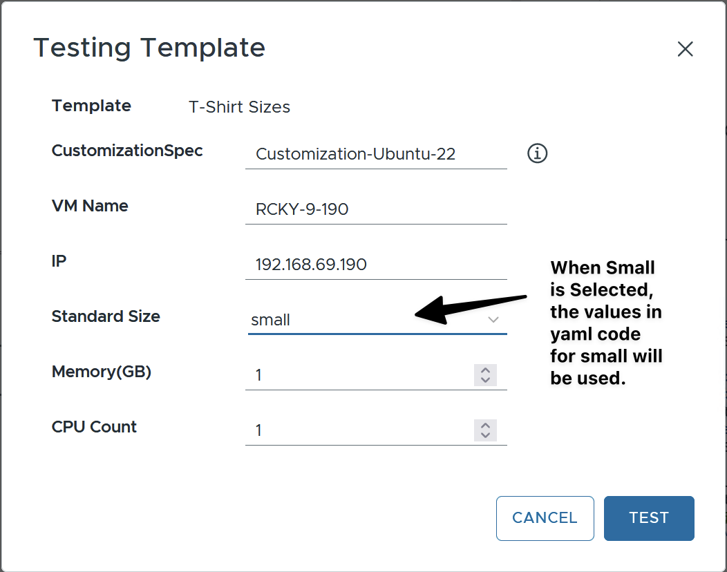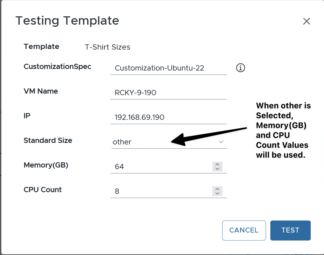 I hope this helps anyone looking to standardize new VM builds using T-Shirt sizes while also providing the flexibility to specify custom CPU and Memory values.
