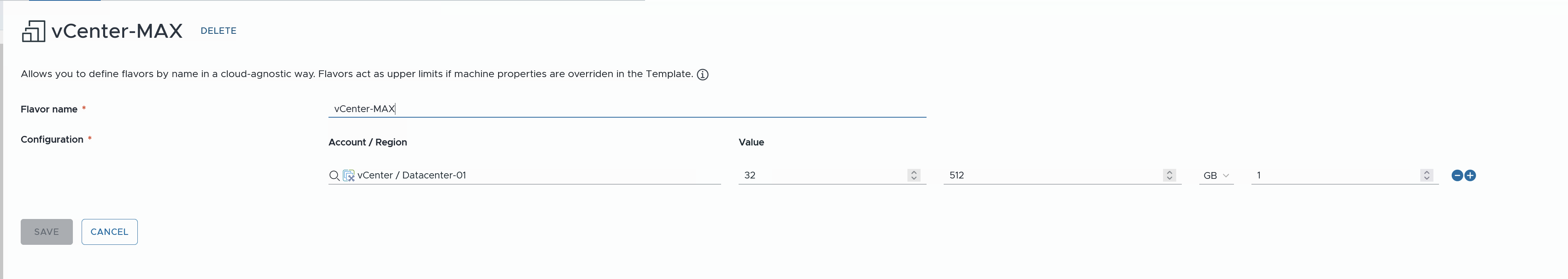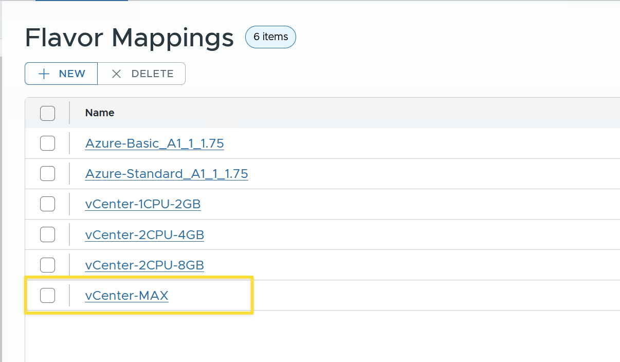 In my lab, I already had some Flavor Mappings defined. To allow for larger sizes, I had to create a new Flavor Mapping for the maximum sizes I wanted to support. I couldn’t specify CPU or memory sizes higher than the largest existing Flavor Mapping.