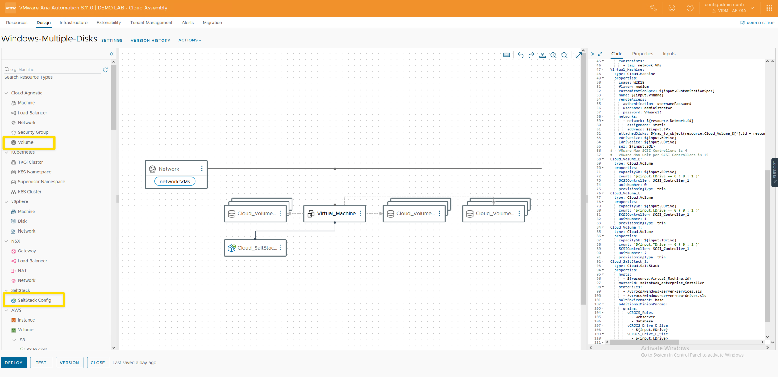 - The SaltStack Config Resource is added to the Cloud Template.
