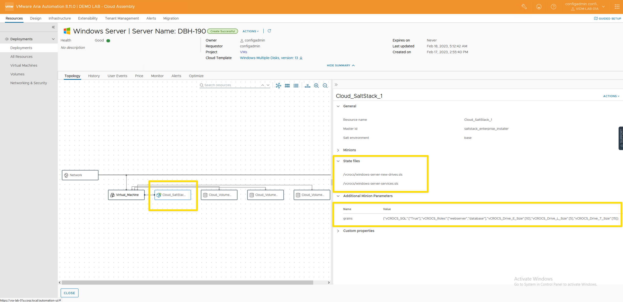 - The combination of having Salt State files run PowerShell scripts is very powerful when creating new Windows Servers with VMware Aria Automation.