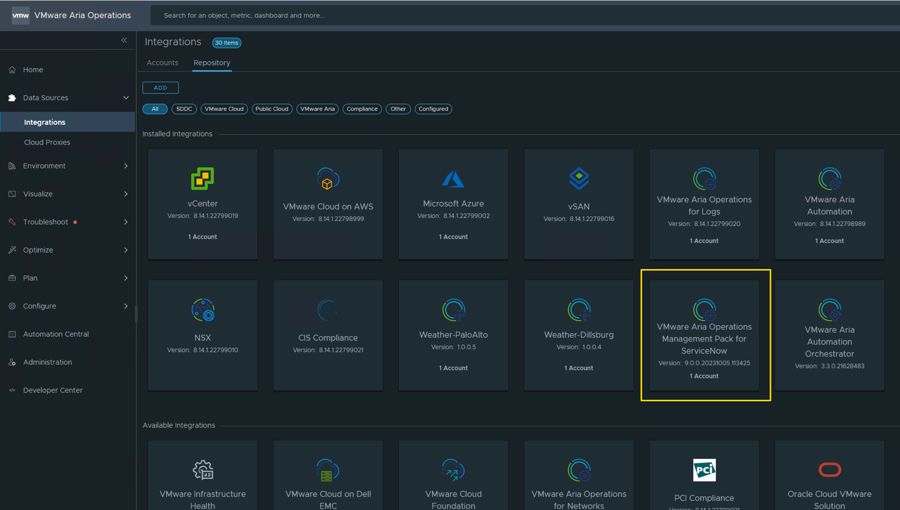 - VMware Aria Operations Servicenow Management Pack documentation.