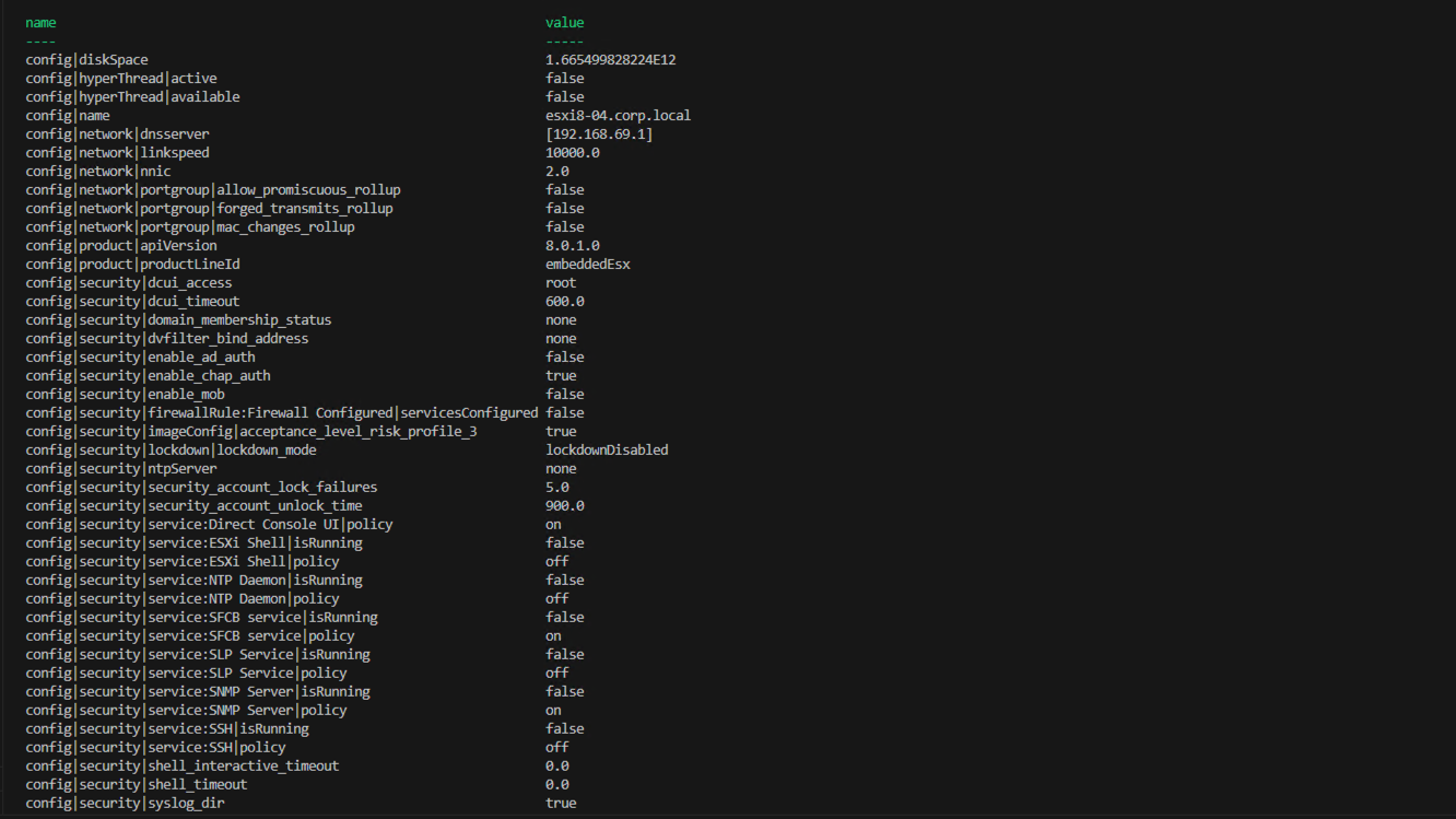 Here is the results of running the PowerShell scripts to get the vropsField names. The column “name” is what you need to use in the json config file.