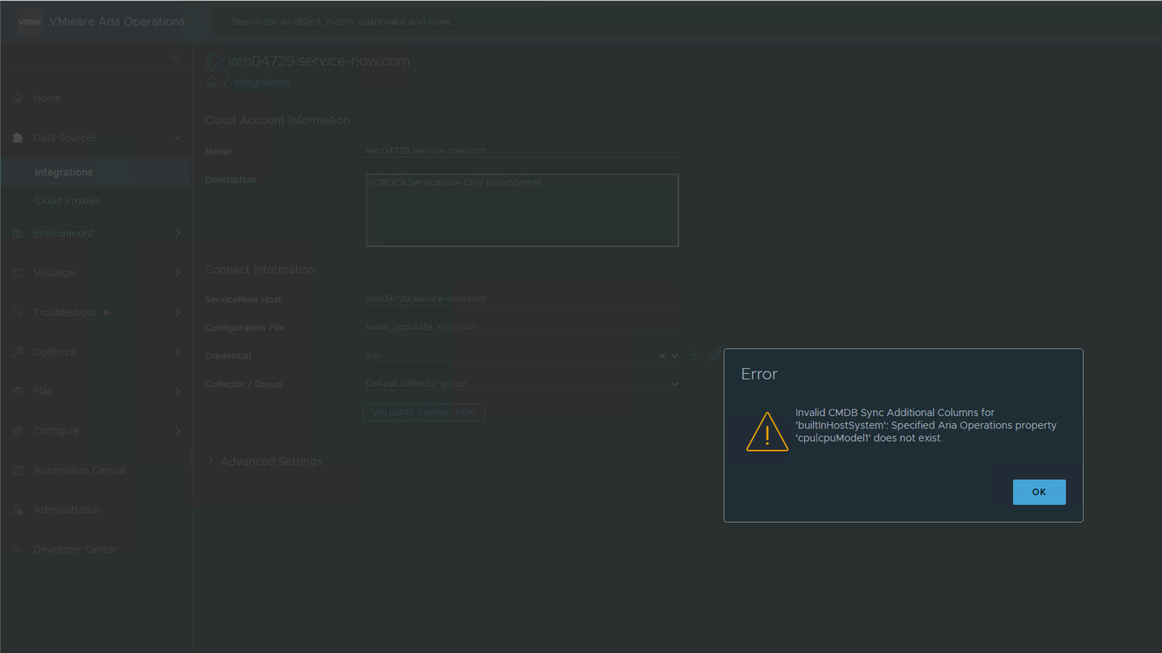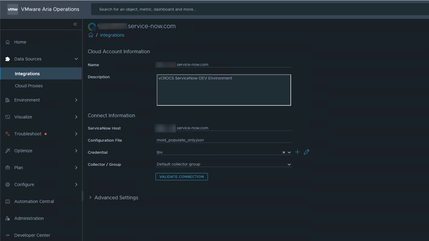 VMware Aria Operations 8.14.1 and Servicenow MP (Management Pack) 9.0 was used for this Blog Post. When new versions of VMware Aria Operations or the MP are released, the code or process may need to be changed.