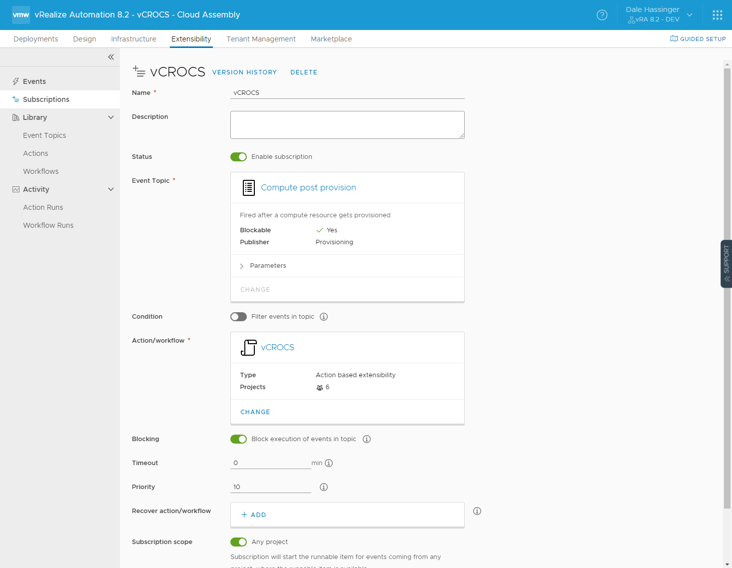 - Within the subscription is where you define which ABX script is run. If you would want to string several ABX scripts together, the subscription could also run a ABX Flow.