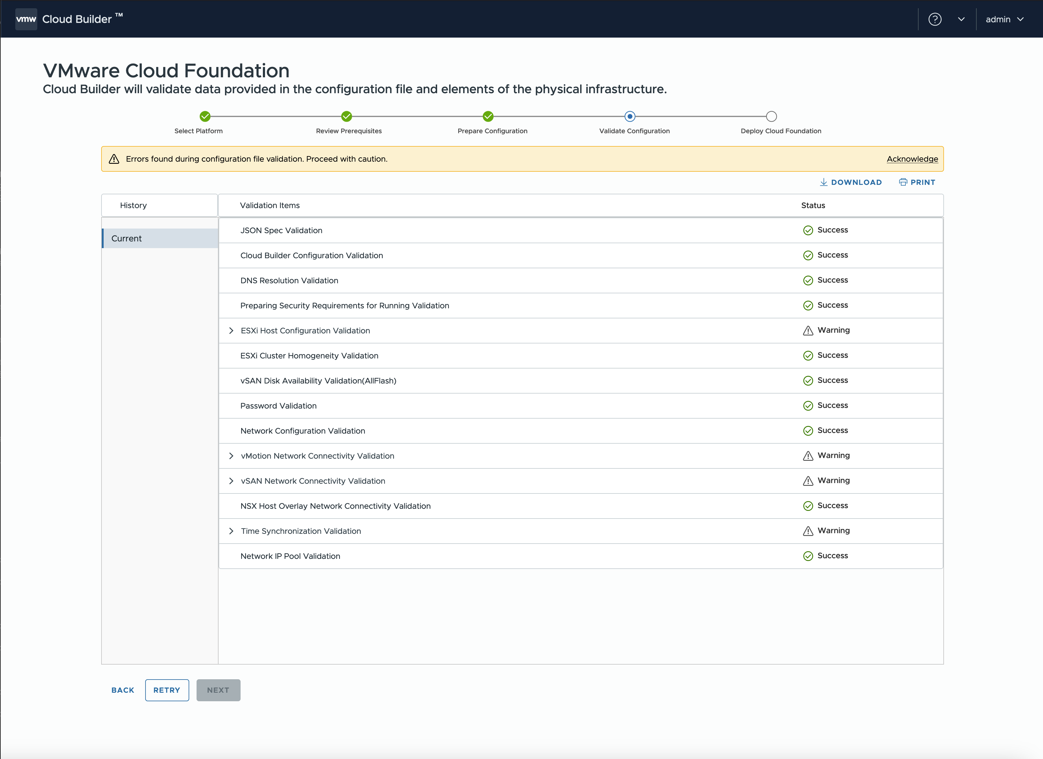 Screen Shot of the VCF Cloud Builder - All validation is successful: