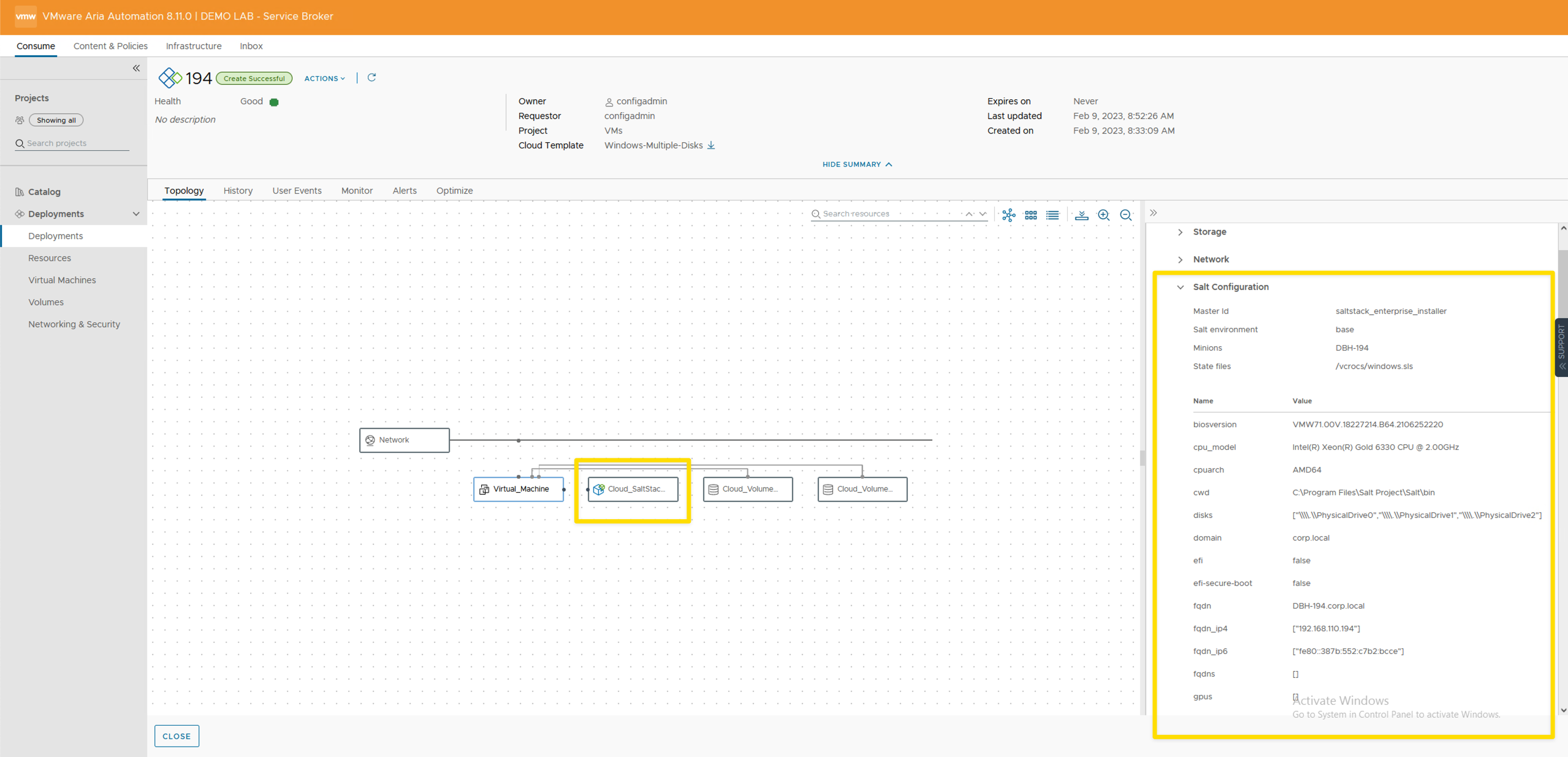 - If you delete the VM deployment in VMware Aria Automation, the minion key will be automatically removed from VMware Aria Automation Config. Built-in decommission.