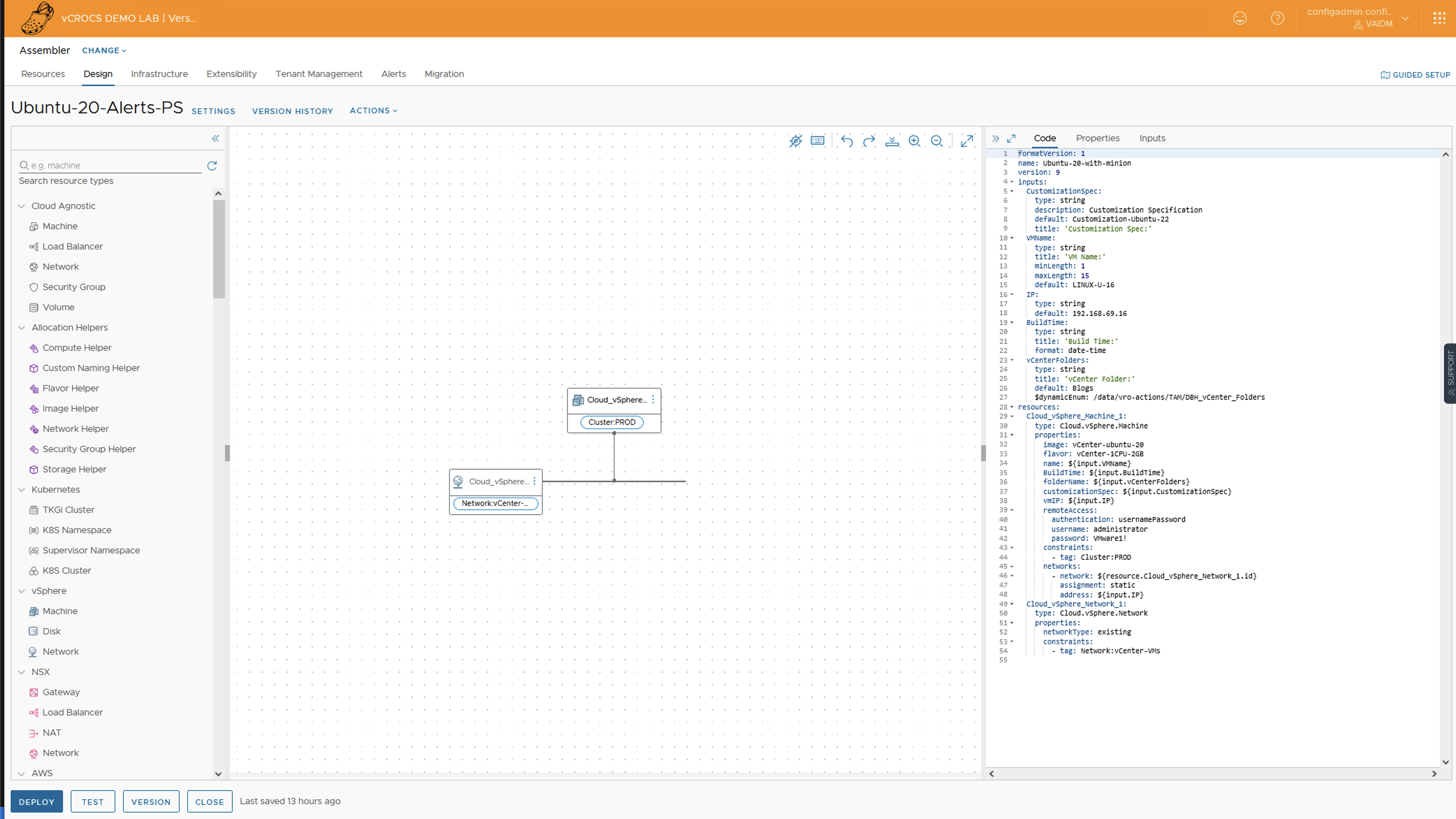 - Within the Design section of Aria Automation, create a template. For the purpose of this tutorial, we will construct a straightforward Rocky Linux VM. | Refer to Screen Shot 1.