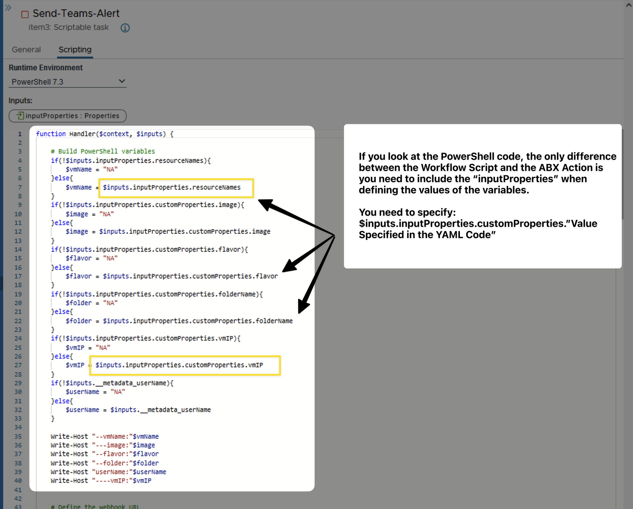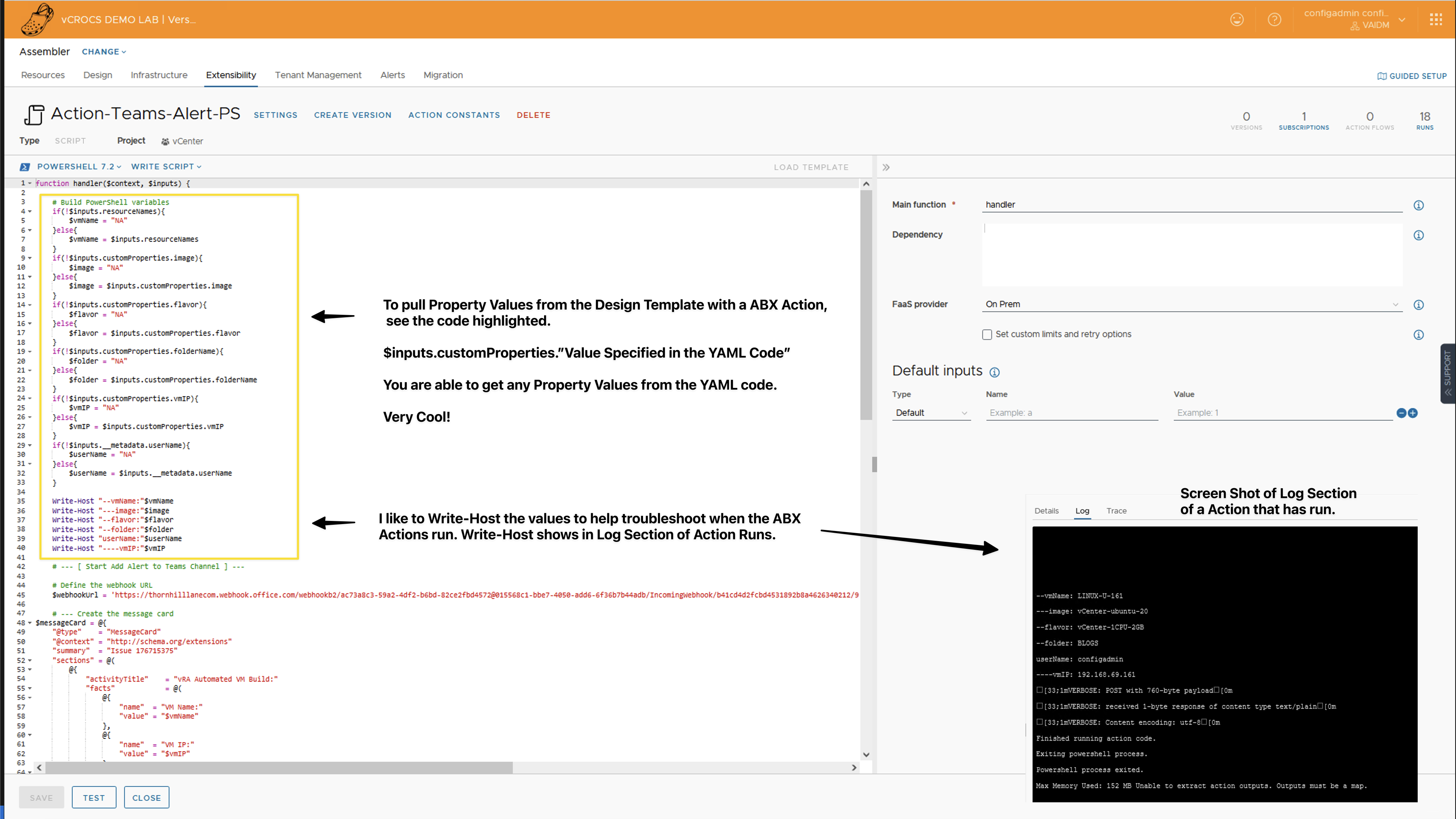 I will guide you through the process of sending alerts from VMware Aria Automation utilizing ABX Actions and Orchestrator Workflows. Though the procedure remains largely the same, there are minor variations in acquiring Property Values. Presenting both methods offers you, the Automation Specialists, the freedom to choose the approach that seamlessly integrates into your workflows. My philosophy in automation is that there are countless ways to achieve the same outcome.