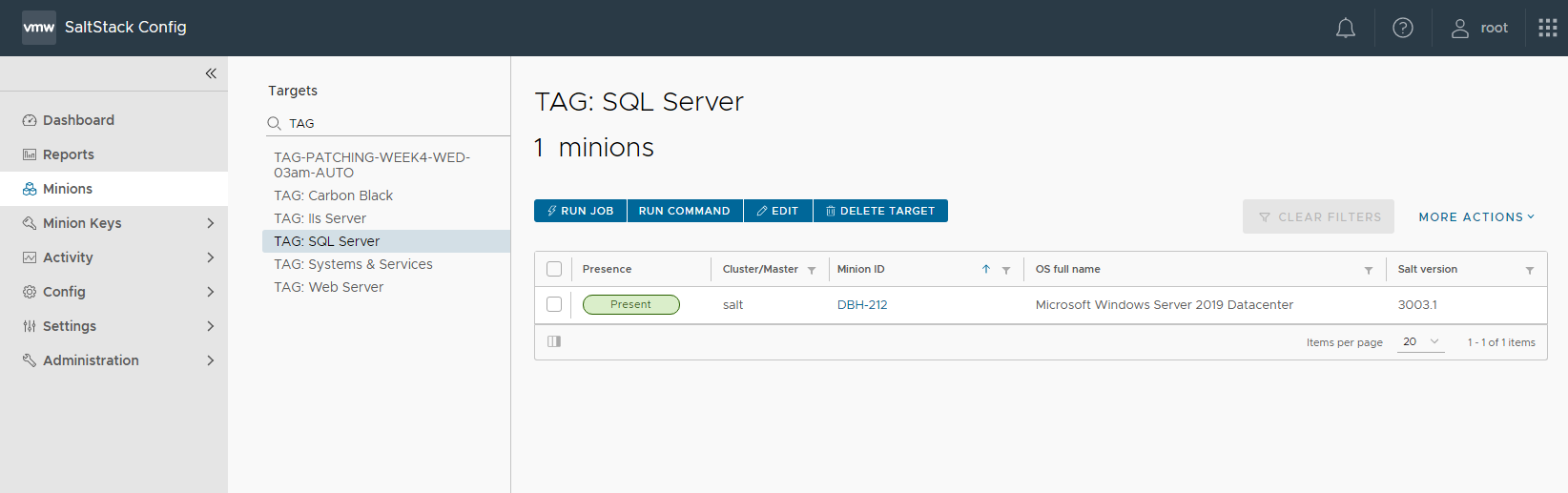 When I add the vCenter TAG information to the grains file I am then able to create SaltStack Config Targets based on the grain “vCenterTags”.